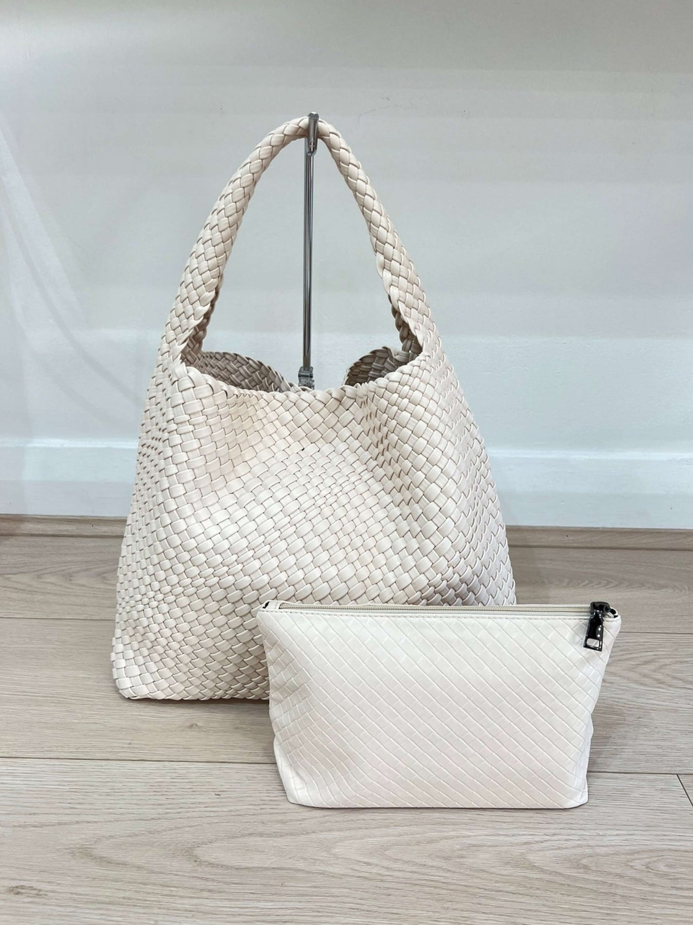 La borsa hobo Luna Chic Oversized Woven è il punto d'incontro tra comfort casual e design elevato. Realizzata con una silhouette spaziosa e una morbida texture intrecciata. questa borsa contiene tutto. dai tuoi essenziali quotidiani a ciò che ti serve per lavoro o scuola. Include una pochette con zip coordinata per una maggiore organizzazione. rendendola l'accessorio perfetto per il tuo stile di vita in movimento.