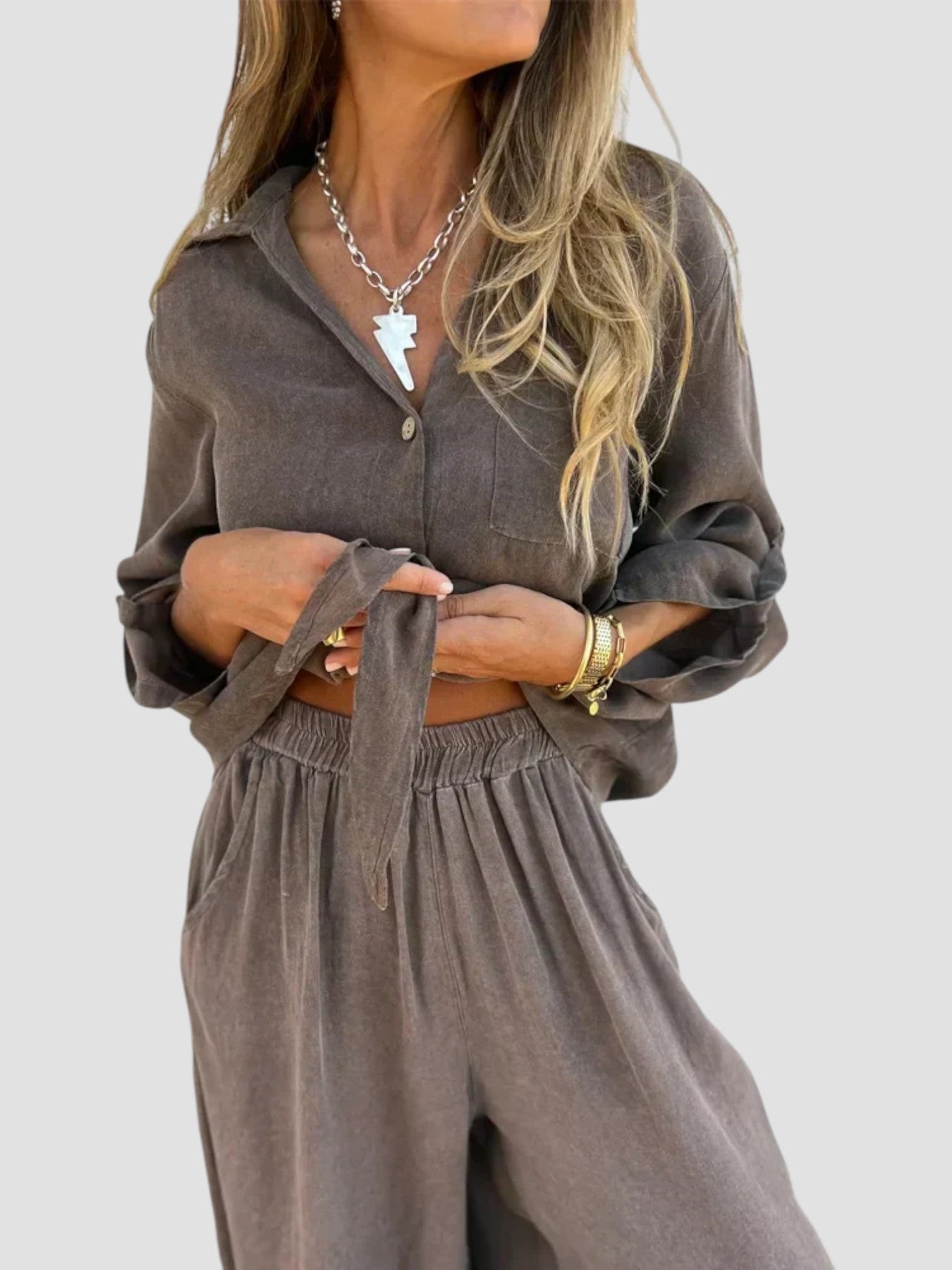 Angelica è il completo due pezzi che non può mancare nel tuo guardaroba estivo. Leggero. armonioso e incredibilmente versatile — perfetto per giornate di sole. uscite nel weekend o momenti casual chic in città.